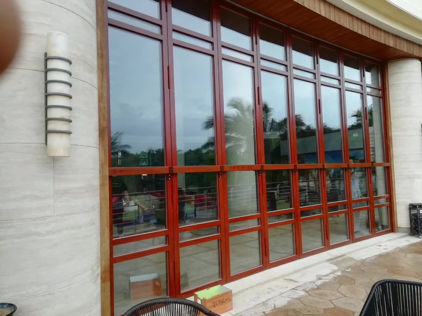 **种是玻璃隔断,早些年由于技术的限制,钢化玻璃并未得到广泛运用,而现在,钢化玻璃的运用已经非常成熟。如图所示,是一种室外的活动隔断,运用了高强度的铝合金型材和12mm的钢化玻璃,这样一来,除了起到阻挡风雨的作用外,也具备安全的功能 。
